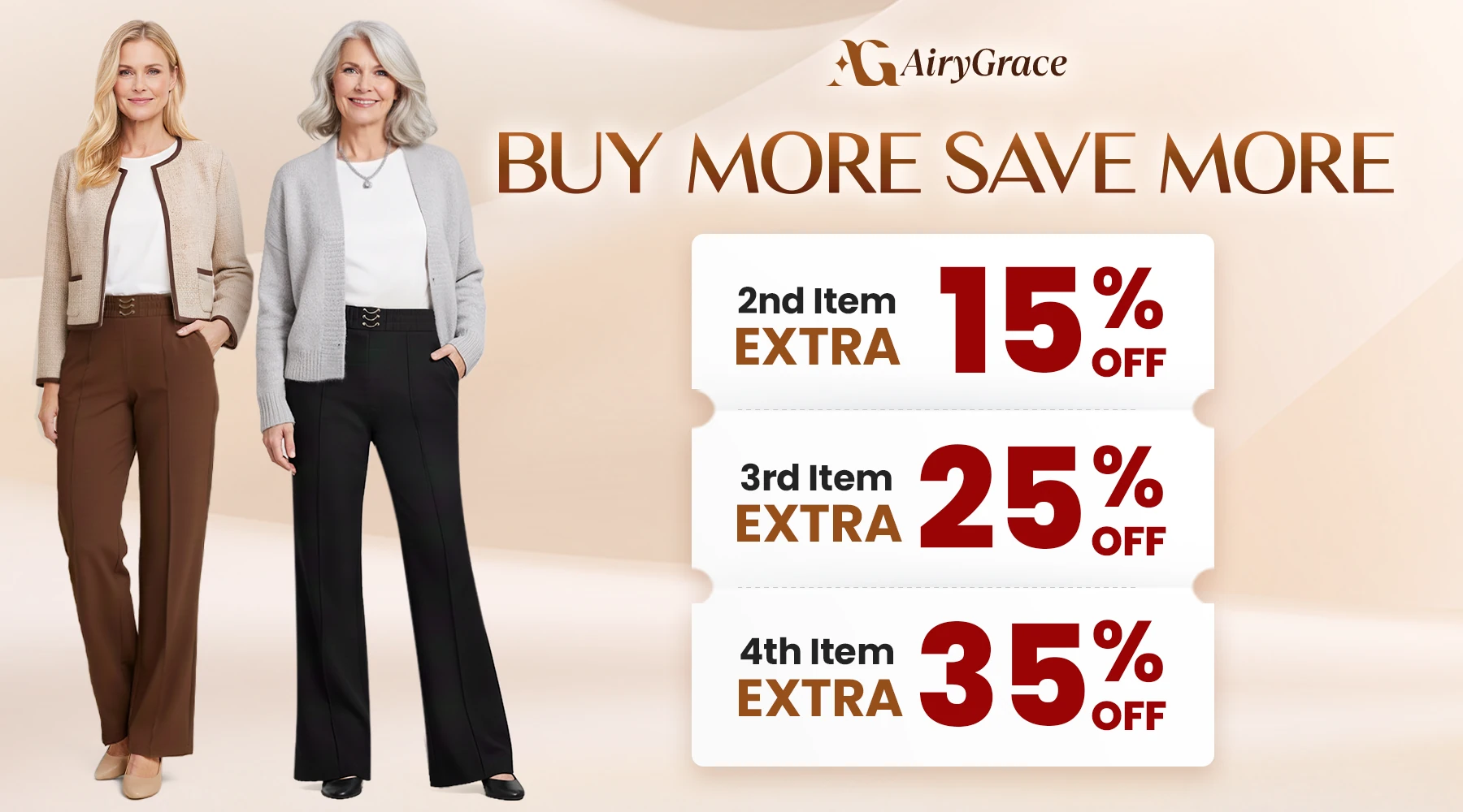 Grace doesn’t age—and neither should comfort. AiryGrace pants with silky-soft, breathable AirFlow® fabric and flexible stretch that never loses shape.