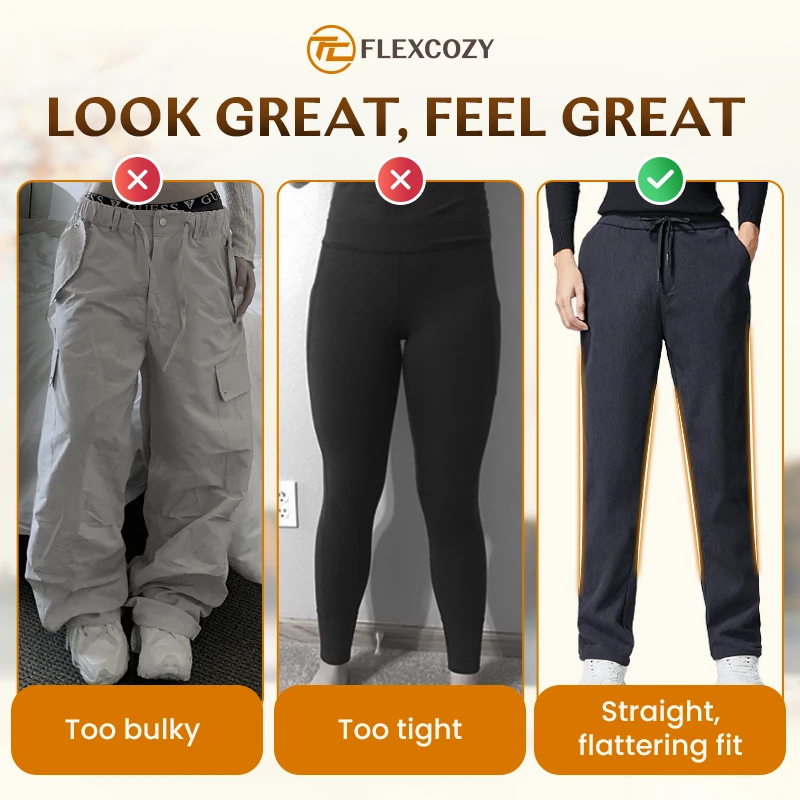 FlexCozy pants are made from soft, stretchy fabric that moves with you. The breathable material ensures you stay cozy and comfortable all day long, no matter what you're doing.
