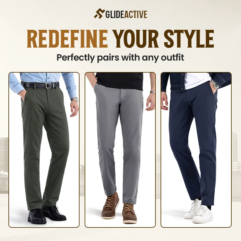GlideActive - Men's Active Khaki Pants With Expandable Waistband