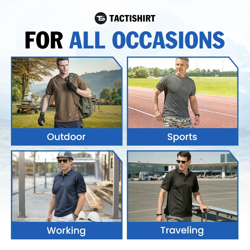Whether you want the simple, classic comfort of a crewneck or the elevated look of a collared version, the TactiShirt adapts to your personal taste and occasion, offering versatile options for all your needs.