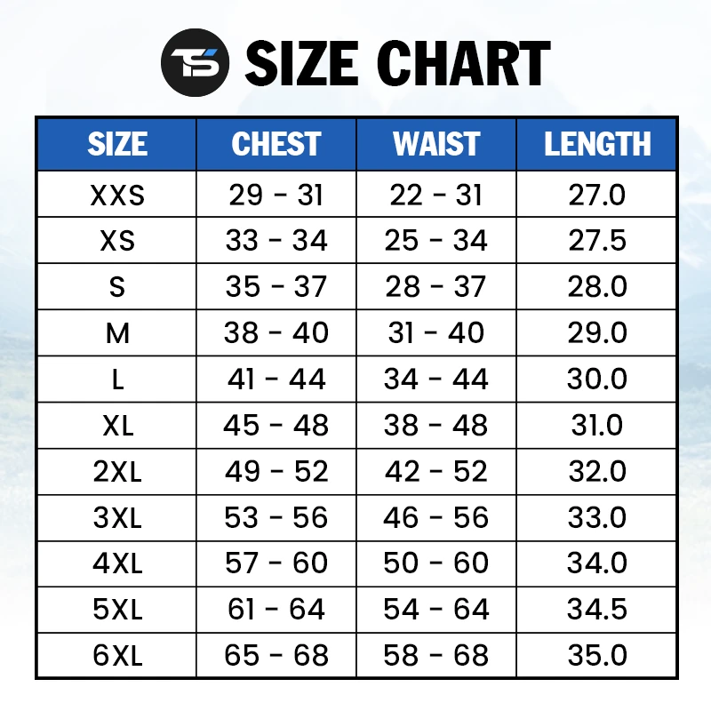 The TactiShirt’s perfect fit size chart accommodates chest sizes up to 68 inches and lengths up to 35 inches, providing a tailored fit for individuals with larger or athletic builds. This sizing is ideal for people up to 6'5" (196 cm) in height and weighing up to 300 lbs (136 kg), depending on their body composition.