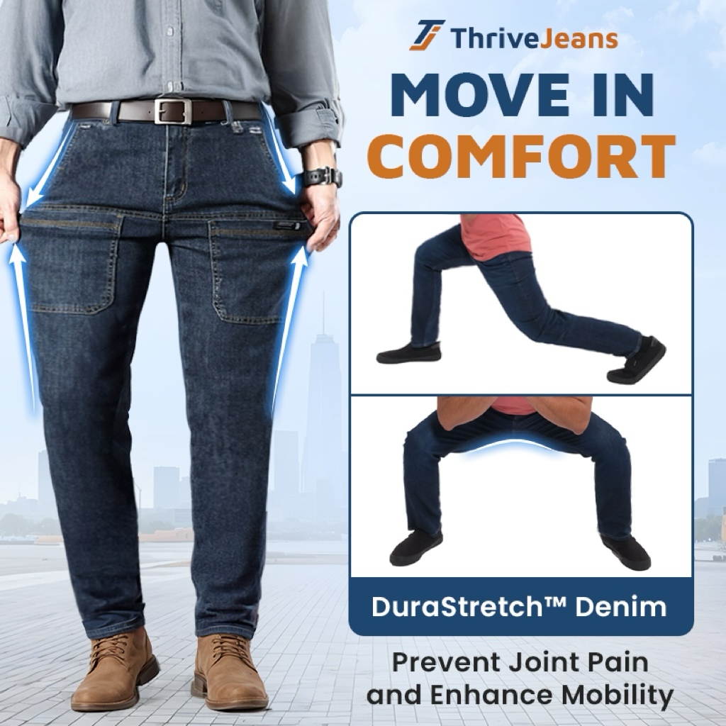 Reinforced double stitching and durable denim makes ThriveJeans highly resistant to tears and abrasions. Built to last, even under the toughest conditions.