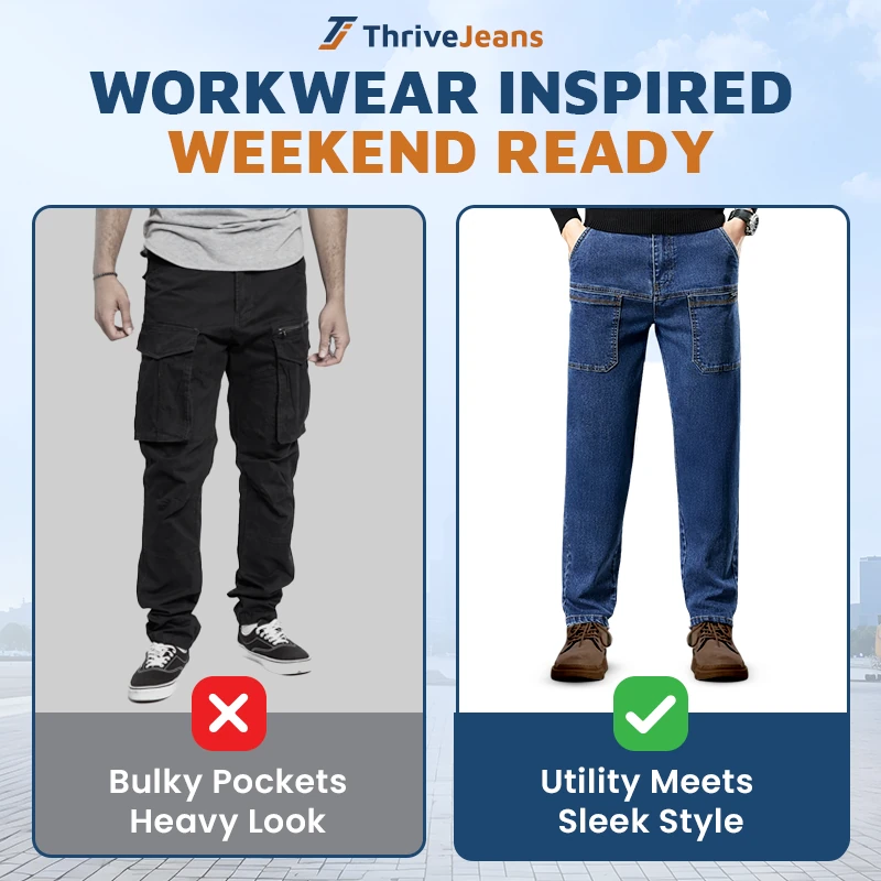6 pockets, endless possibilities! ThriveJeans are like your personal toolkit—spacious, practical, and ready for anything. From your work tools to phone and wallet, there’s always a perfect spot!